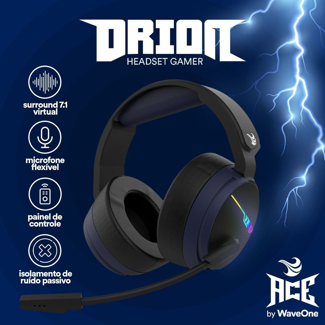 Fone de Ouvido 7,1 ACE Orion WaveOne Headset Gamer com mic removível