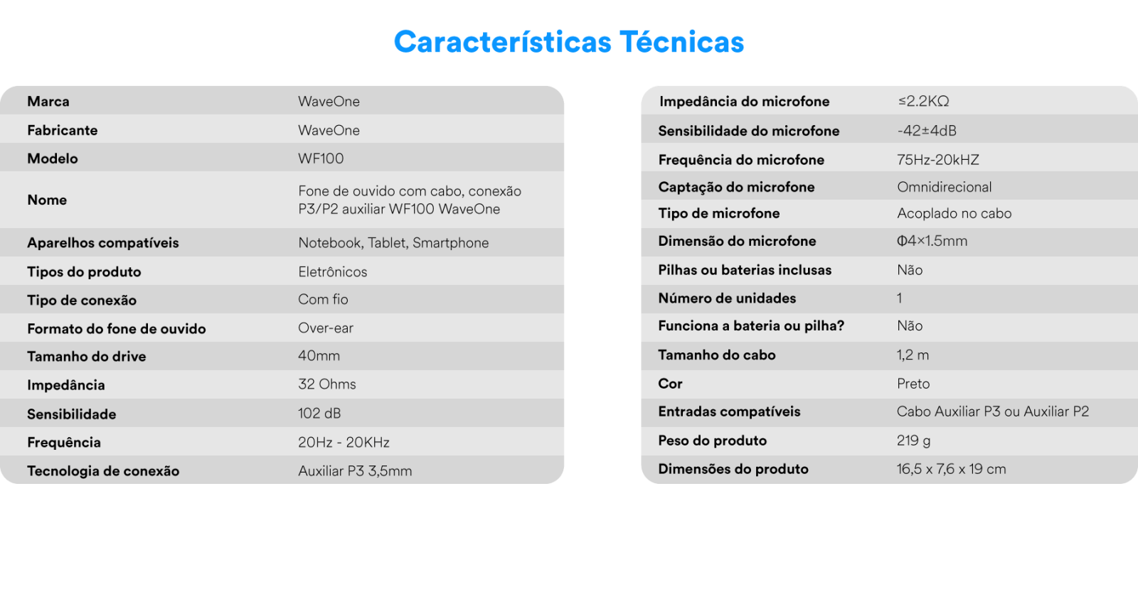 O Fone de Ouvido WaveOne WF100 é a escolha ideal para quem precisa de um headphone de qualidade para ouvir aquela música incrível, é ideal para reuniões, conferências, apresentações e até para momentos de lazer, seja para ouvir música ou podcasts. Permite praticidade para o seu dia-a-dia, além de ser elegante e de ótima qualidade.