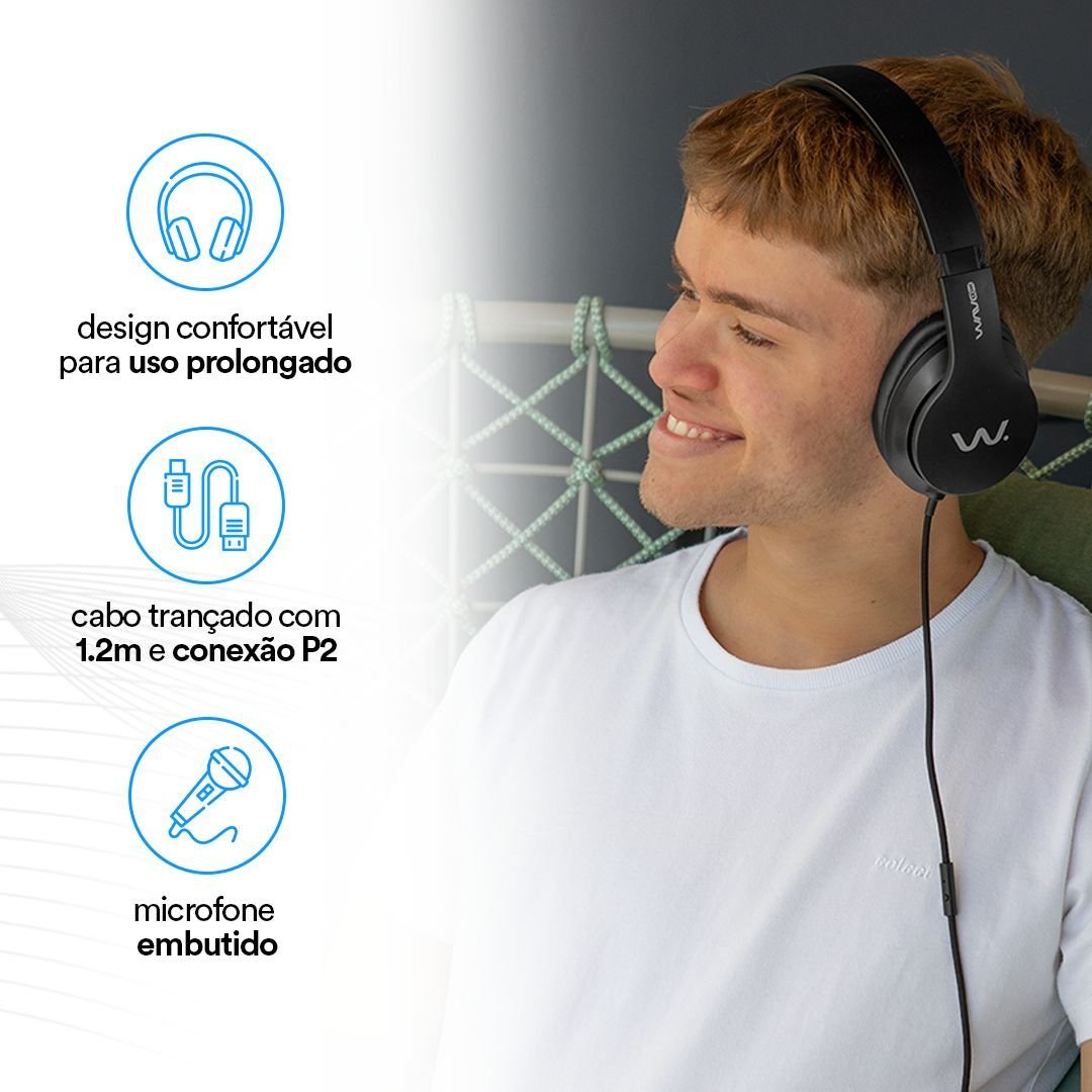 Fone de Ouvido WaveOne WF100, Preto, Com Fio, Dobrável, com Microfone