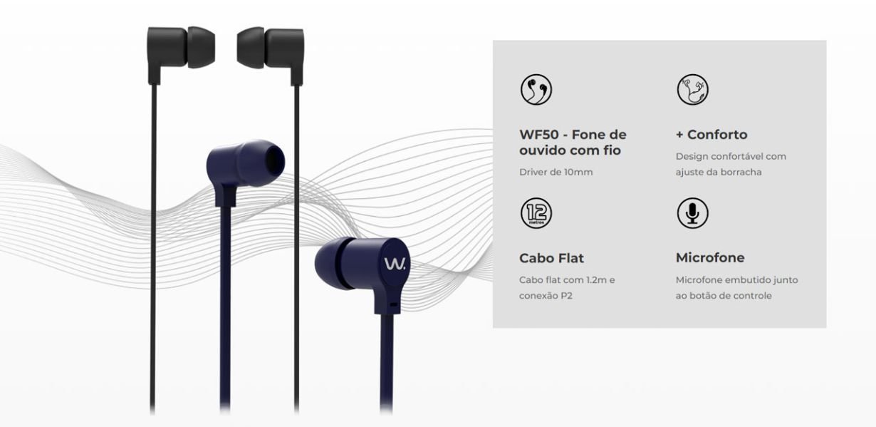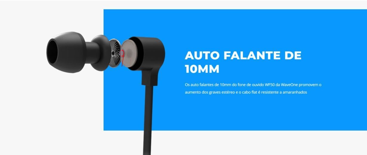 FONE DE OUVIDO WAVEONE WF50 PRETO, C/MIC