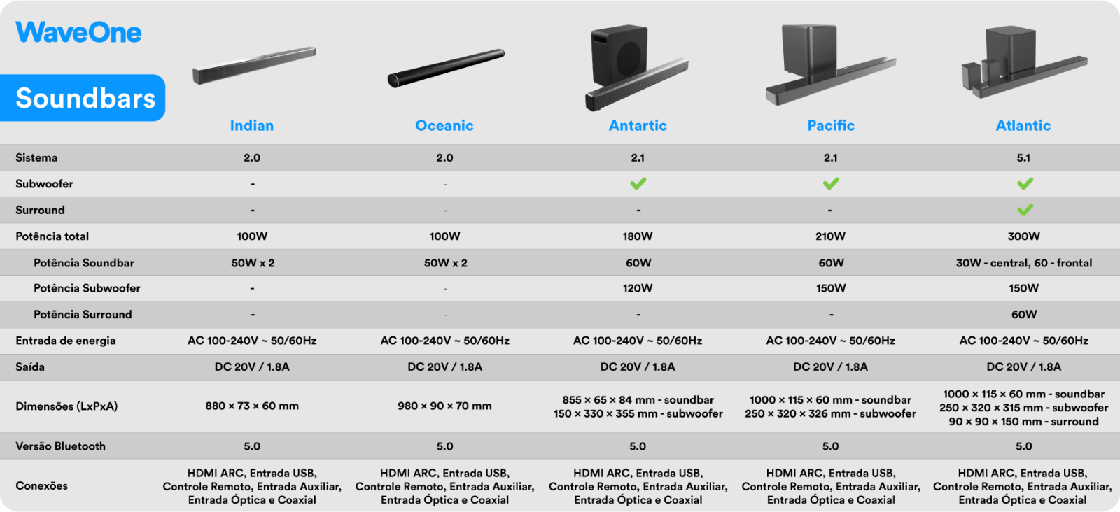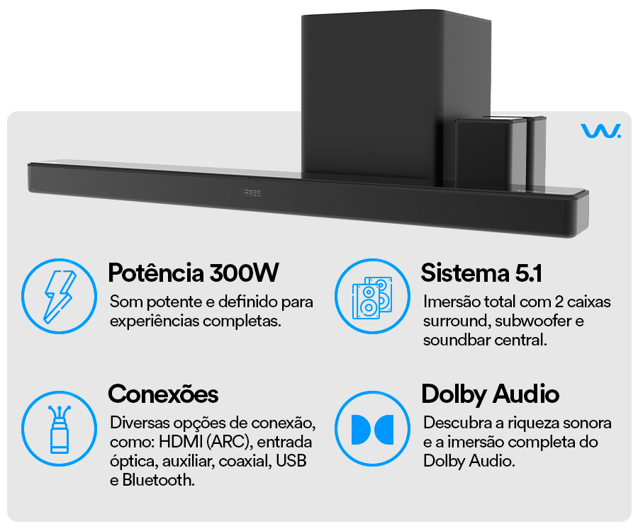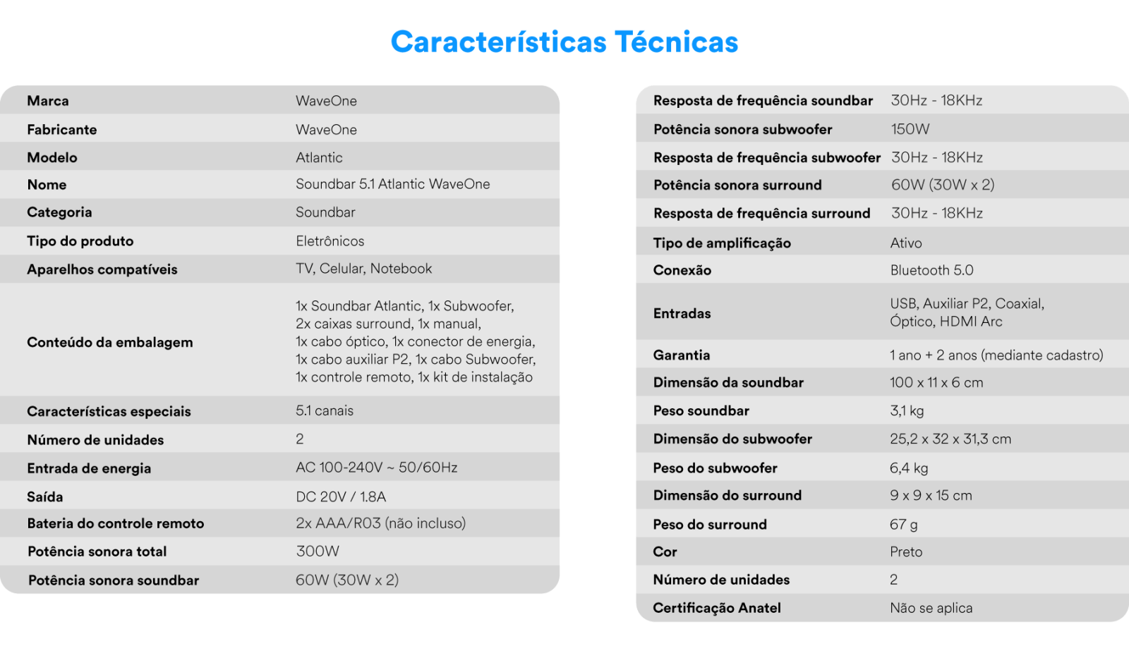 A Soundbar 5.1 Atlantic Ocean traz mais emoção ao seu ambiente.